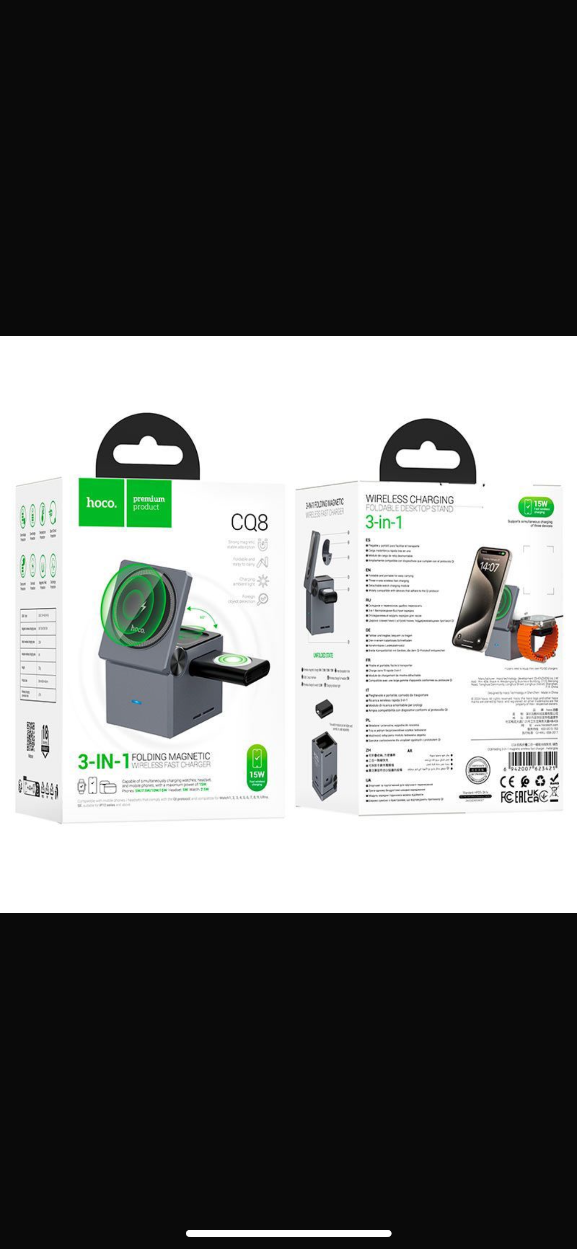 Hoco CQ8 Premium Quality *Portable & Foldable* *3 in 1, 15 Watts* *Wireless Charger*